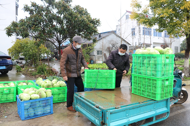 2月11日,在皖河农场三益蔬菜基地,菜农们正在紧张采摘蔬菜,准备运往安庆市三义蔬菜市场,供应蔬菜市场。