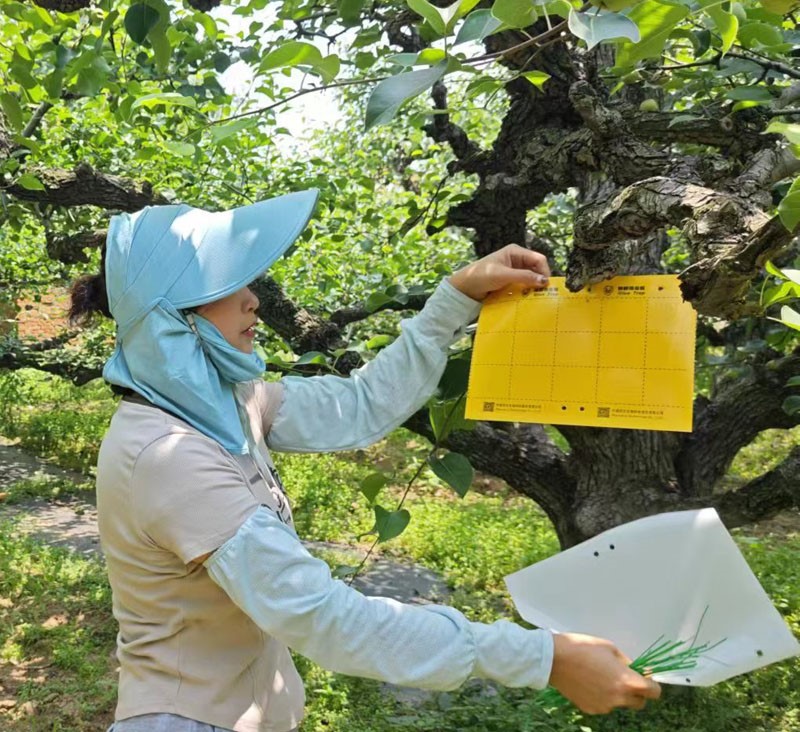 作为绿色食品生产基地的砀山果园场公司一直高度重视病虫害的人工防治,通过悬挂迷向丝、杀虫板、杀虫诱芯和安装杀虫灯诱杀各类害虫,不但节约农业生产成本,而且有效地控制各类害虫的发生发展,促进水果的绿色生产。