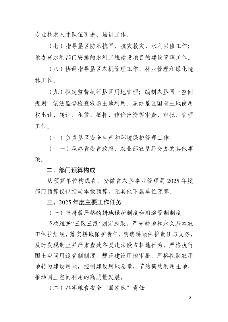 安徽农垦集团:安徽省农垦事业管理局2025年度项目支出绩效目标