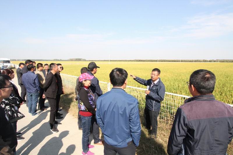 与会人员观摩了龙亢农场粳稻大田长势和“开心稻田”有机水稻项目。副场长王永玖现场介绍了龙亢农场现代农业发展,水稻生产、科研和栽培技术推广,粳稻品种的生长特性、栽培技术要领等方面情况。