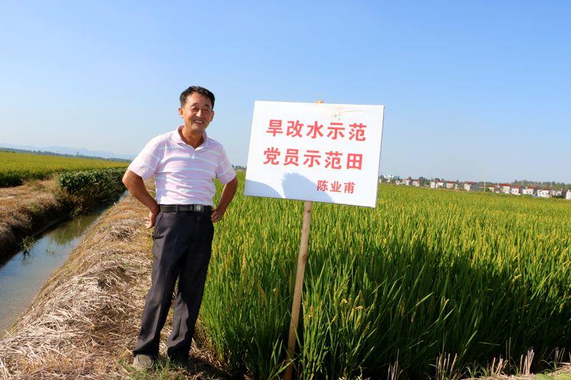 今年我家的水稻长势特别好,预测亩产在1600斤朝上,以前我们种植黄豆一直都是两三百斤的产量,好多人看到我家水稻长势好,下决心明年也在自家地里进行改种,老古话说的真不假:地改田、肥三年。安徽农垦皖河农场双河分场3队队长、共产党员陈业甫,对再次来到他家田头调研的农场党委书记赵军说。