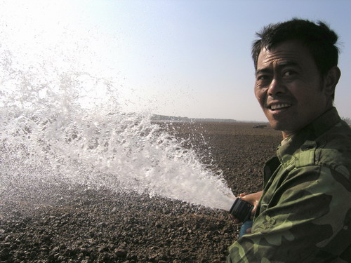 根据气象信息,地处明光市北部的潘村湖农场近期无明显降水,为确保全场已播种的小麦及时出齐苗、出好苗、出壮苗,该场苏拐电站日前提闸引水入圩,广大家庭农场职工不等不靠,利用充足的水源,采取微喷、湮灌等多种形式积极灌溉促苗。图为10月23日上午,一分场职工刘开强正在田间灌溉的情景。(杨登宏)