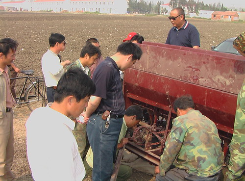 经过国家小麦专业组组长、山东农业大学于振文教授,宿州市农委,安徽农垦夹沟农场等三家的充分协商和酝酿,2006年10月10日,国家级优质高产700公斤小麦攻关课题组的专家和技术人员来到我场,对小麦进行精量播种。专家组一行来到农场后,直接深入到攻关田块,组织播种工作。课题组人员按精量播种的要求,仔细清理播种仓,认真调整播种量和播种行距,清心检查机械的运行状况,每一个环节都做到精益求精,万无一失。经过一天的努力,攻关田块的小麦全部按每6公斤的用种量播种下去。