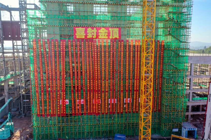 于都县生活垃圾焚烧发电项目主厂房结构长65.5米,宽61.8米,高41米,涵盖垃圾收集、存储、焚烧、余热利用以及综合办公等功能,项目自2021年1月15日基础出零米以来,仅用5个月就顺利实现结构封顶。