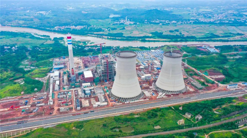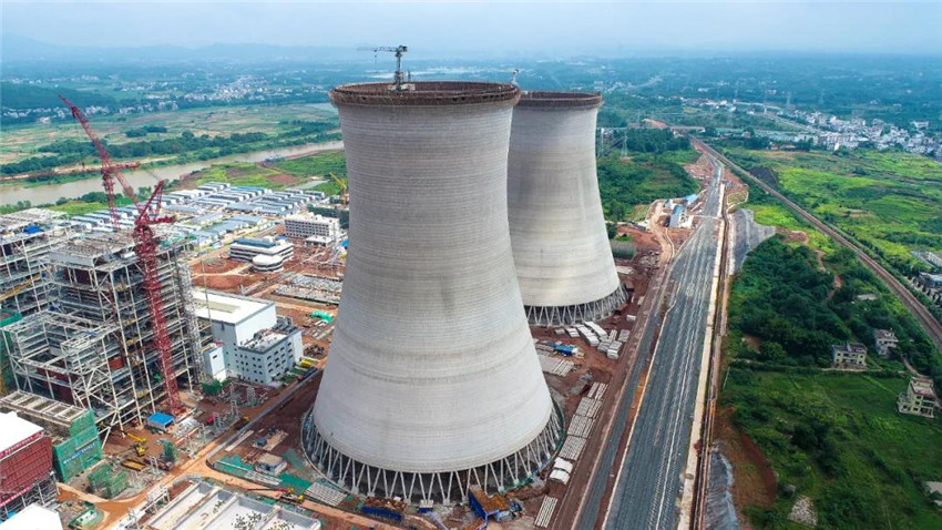 赣浙国华信丰电厂新建工程由赣浙国华(信丰)发电有限责任公司投资,江投集团投资占比45.9%,电厂位于江西省赣州市信丰县,是国家能源局对口支援原中央苏区信丰县重大能源项目、江西省重点火电建设项目。工程新建2台660兆瓦超超临界燃煤发电机组,并同步建设高效脱硫、脱硝和超低排放等环保设施。两座冷却塔是淋水面积1万平米的双曲线自然通风冷却塔,塔高160米,筒壁共112节,高度相当于一座53层居民楼,筒壁厚度为分段等厚,厚度0.21至1米不等。