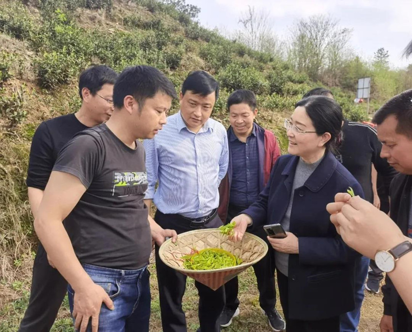 当日下午,曹鸿霞一行到集团扶贫点永新县芦溪乡平丰村,观摩了集团援建的党群便民服务中心建设进展情况、党建扶贫双推进情况、集团援助的农机春耕生产服务情况及白茶基地村民采茶增收情况。