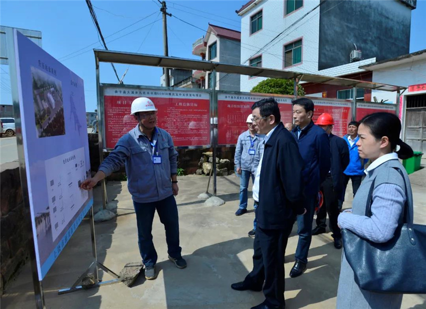 3月26日,集团党委副书记、副董事长、总经理曾昭和,副总经理张骅一行到余干县大溪乡九连岗50MW渔光互补光伏发电项目调研指导。
