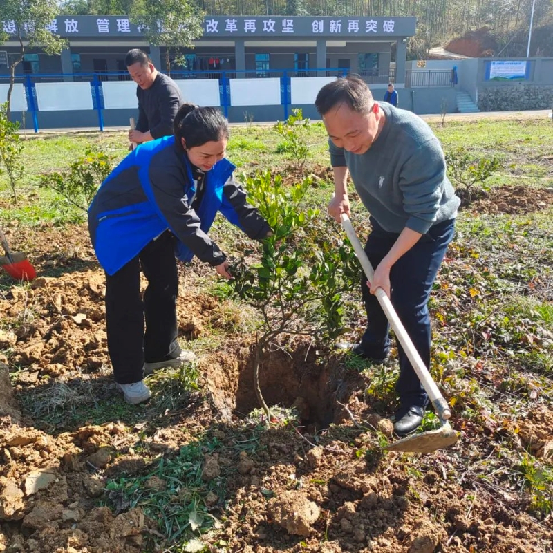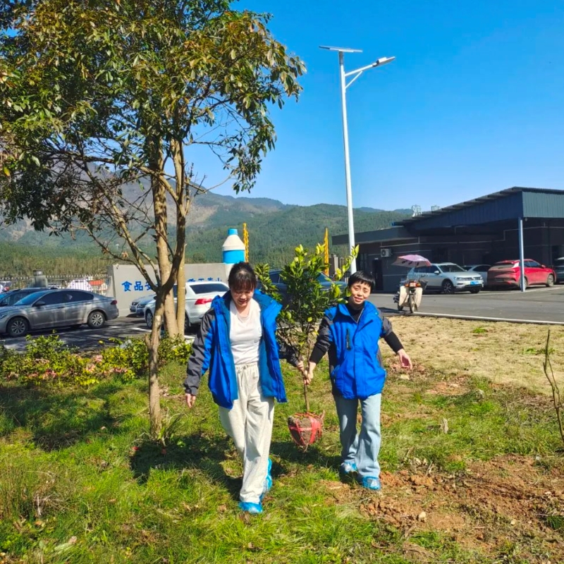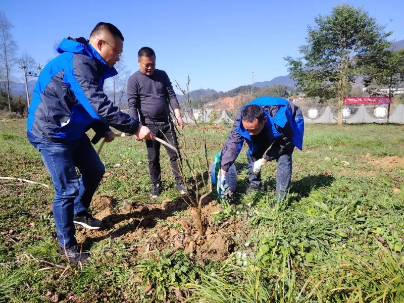 植树现场,大家热情洋溢,充满干劲。他们挥舞着铁锹,铲着泥土,培土正苗,引水浇灌,一派热火朝天的景象。大家分工协作,种下一棵棵希望的树苗。经过近两个小时的辛勤劳动,新种植的树苗在春风中挺立、生机盎然。活动共栽种果树等苗木近百余株,为新能源电站增添了又一抹“绿色”。