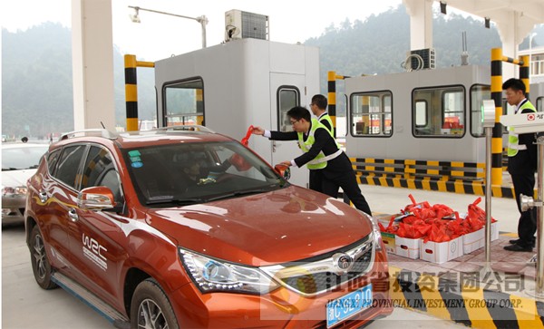 元月4日上午10时23分,随着资溪高速公路资溪收费站入站口绿灯准时亮起,在喜庆的掌声中,资溪高速通车正式拉开序幕。早已排队等候在入站口前的车辆依次取卡并接过公司通车第一天送上的橙子,顺利驶上资溪高速公路。