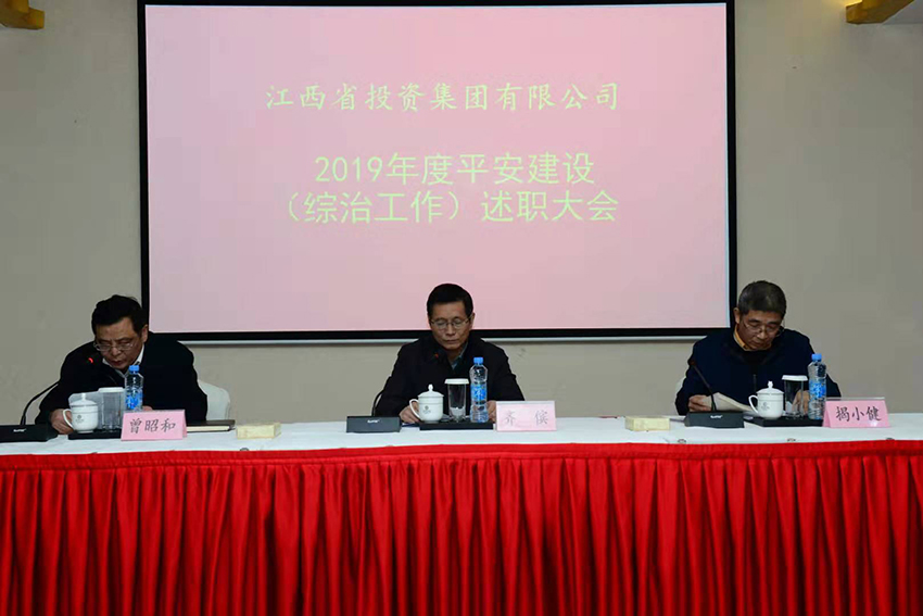 揭小健书记围绕落实领导责任制、推行目标管理、完善防控体系、做好建国70周年期间稳定工作等方面,进行了2019年度集团平安建设(综治工作)述职。一年来,在省市高度重视、充分理解、大力支持和帮助下,投资集团上下凝心聚力,攻坚克难,认真开展矛盾纠纷排查化解,巩固夯实综治基础,较好地实现了企业重组、发展稳定的和谐统一,确保了平安建设(综治工作)的良好局面。