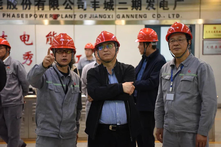 11月11日,省发改委党组成员、省能源局局长温俊杰率专家组一行到丰电二期、丰电三期调研督导。集团公司党委书记、董事长揭小健,省能源局副局长刘静,省能源局电力处副处长钟彦,赣能股份主要负责人,宜春市、丰城市发改委领导,集团安全环保部有关负责人等一同调研。