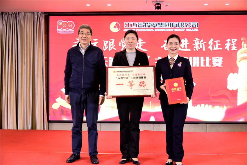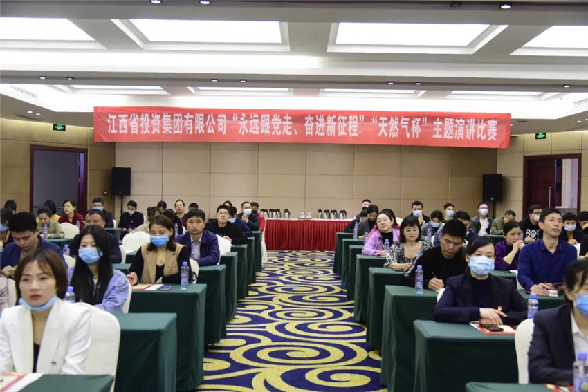 为庆祝中国共产党成立100周年,深入开展党史学习教育,重温党的光辉历程、伟大成就,进一步凝聚共识、汇聚力量,引导激励广大职工爱岗敬业、勇于创新,永远跟党走、奋进新征程,3月31日,集团公司在南昌举办“永远跟党走、奋进新征程”为主题的“天然气杯”演讲比赛,来自各所属企业的15位选手参赛。集团党委书记、董事长揭小健及集团在家高管参加活动并为获奖选手颁奖。集团直属机关各党支部全体党员,所属部分企业党员职工代表共100余人观摩比赛。