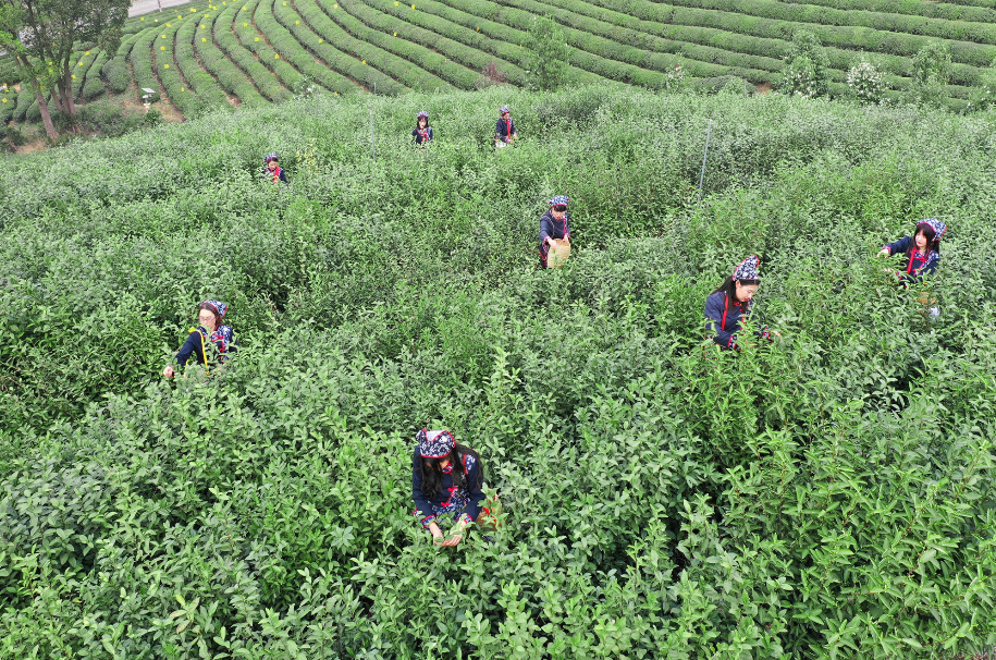 又到一年春茶开采时,皖垦茶业集团良种茶园开园采摘。3月14日,在敬亭山茶场公司,满山遍野的茶树迎春吐翠,采茶姑娘们正在采摘刚刚萌发的茶芽。受天气影响,今年春茶开采期与上年相比推迟了12天,春茶品质较往年偏好,鲜叶价格稳中有升,预计产量同比增加10%左右。 (垦 宣)