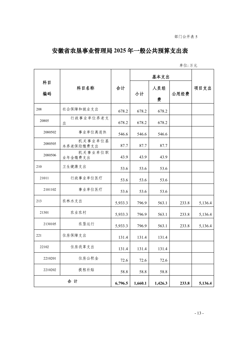 安徽农垦集团:安徽省农垦事业管理局2025年度项目支出绩效目标